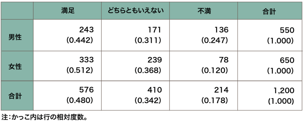 画像出典:Data StaRt データ・スタート | クロス集計(https://www.stat.go.jp/dstart/point/seminar/02/3-2-2.html)